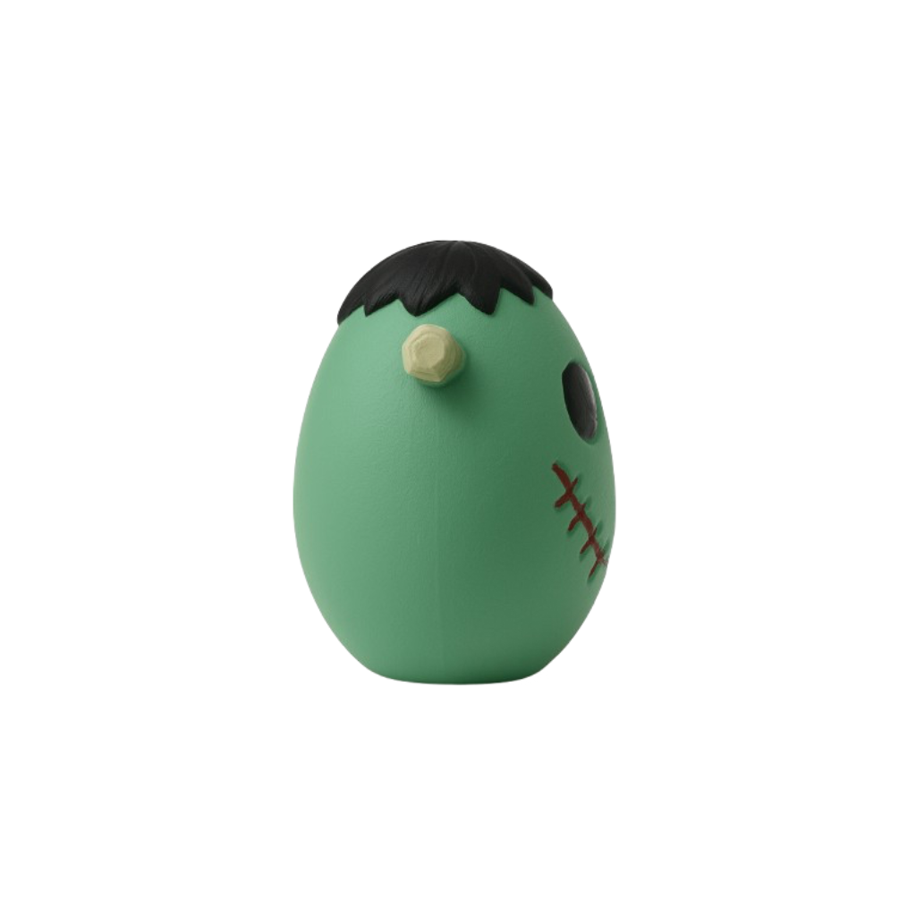 ¡Frankenstein ha llegado! Este huevo de látex es perfecto para perros pequeños y medianos que quieran divertirse en Halloween. Con sus 10 cm de tamaño (talla L de la versión de huevito original), es suave y blandito y tiene un chirriador interior. ¡Espeluznante y mordisqueable a partes iguales!