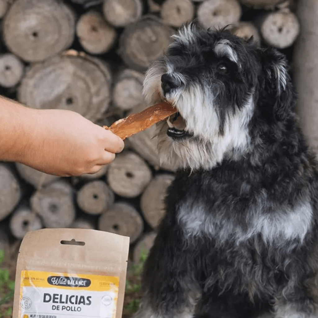 - Ingredientes: pechuga de pollo (22%), piel masticable (72%). Aditivos: sorbitol (2%), glicerina (2%), almidón (1.5%), sal (0.5%)